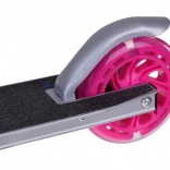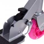 Höhenverstellbarer Lenker mit weichen Schaumstoffgriffen wächst mit dem Kind mit und sorgt für eine komfortable Bedienung. Das rutschfeste Grip-Tape auf dem Deck gibt sicheren Halt, während die hintere Trittbremse ein schnelles und gleichmäßiges Anhalten ermöglicht. Ein Klappmechanismus für kompakte Aufbewahrung und ein praktischer Ständer sind ebenfalls vorhanden.