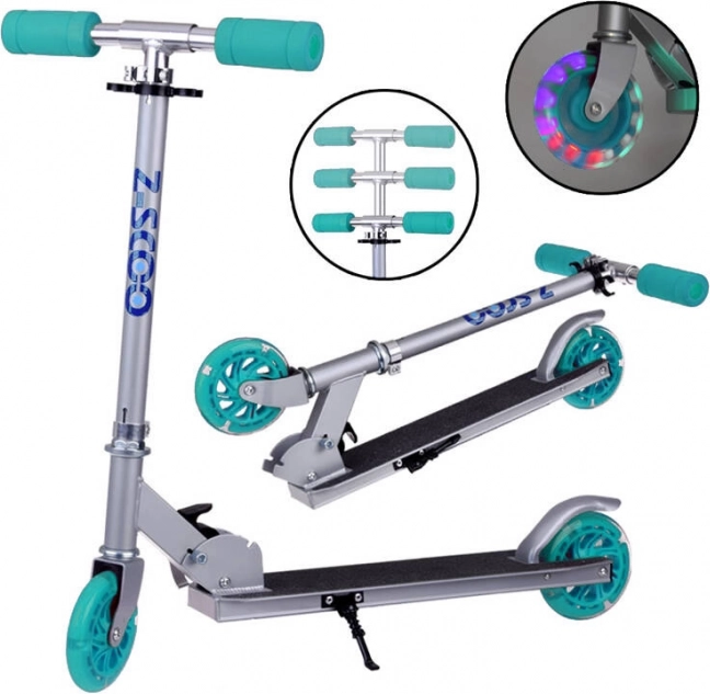 Klappbarer Kinderroller mit LED-Rädern – Türkis