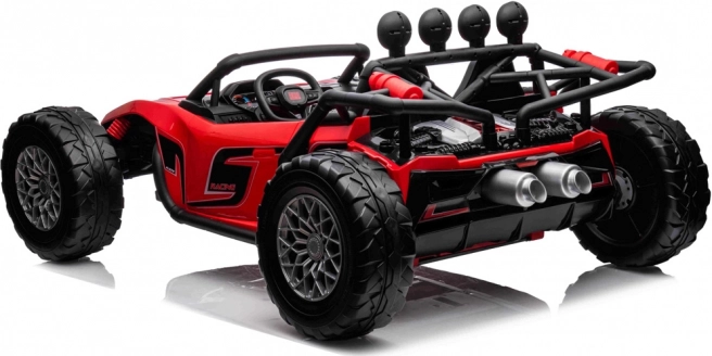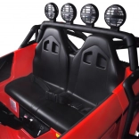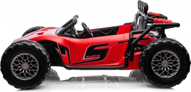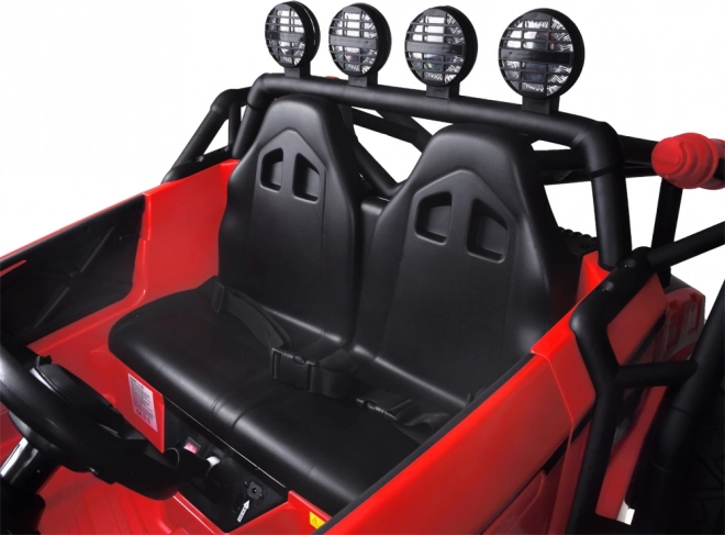 Dieser zweisitzige elektrische Buggy ist die ideale Wahl für kleine Abenteurer. Dank Antrieb mit 2× Motor (2× 24V/200W), 24V/7Ah-Akku und Federung vorne und hinten meistert er Unebenheiten, Rasen und leichte Steigungen. Das sanfte Anfahren ermöglicht einen Start ohne Ruckeln, und der bequeme Sitz mit Sicherheitsgurten erfreut Kinder wie Eltern.