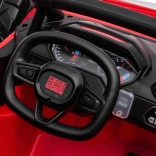Die Steuerung ist auf zwei Arten möglich – das Kind fährt selbst mit Lenkrad und Pedal, oder die Kontrolle übernimmt ein Elternteil über die 2,4-GHz-Fernbedienung. Das integrierte Musikpanel spielt fröhliche vorinstallierte Lieder sowie eigene Titel von USB/MP3 ab. LED-Lichter vorne und hinten unterstreichen den sportlichen Look und erhöhen die Sichtbarkeit.