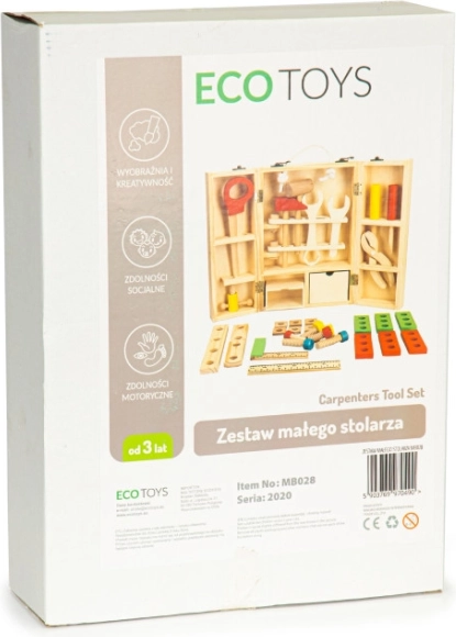 Dieses einzigartige ECOTOYS-Werkzeugsatz ist nicht nur lustig, sondern auch lehrreich. Es besteht aus hochwertigem Holz und enthält: