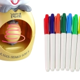 Schaffen Sie zuhause eine festliche Atmosphäre mit dem kreativen Set zum Bemalen von Ostereiern. Das Häschen dient als praktische Unterlage und fröhliche Deko, während die Stifte Kindern ermöglichen, mühelos bunte Muster zu gestalten. Die fertigen Eier werden zu einer schönen Zierde für den Tisch oder das Kinderzimmer.