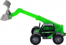 Grüner Traktor mit ausziehbarem Arm und austauschbaren Aufsätzen