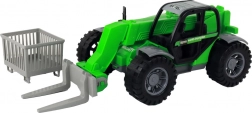 Im Lieferumfang sind drei leicht austauschbare Aufsätze enthalten: Gabel für Ballen und Material, Transportkorb und Holzgreifer für Äste. Der Rückzug-Antrieb ermöglicht ein einfaches In-Bewegung-Setzen – kurz anschieben und los geht’s. Das Spiel mit Bau- und Agrartechnik fördert Feinmotorik, Koordination und kreatives Denken.