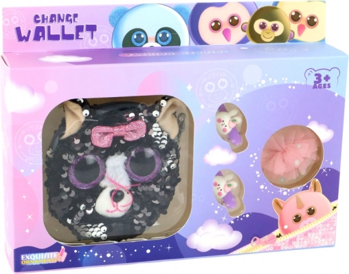 Erleben Sie die Freude Ihrer kleinen Dame mit diesem wunderschönen Set, das mehrere tolle Teile enthält. Das Herzstück ist eine Geldbörse in Kätzchenform mit violetten Augen und rosa Schleife. Perfekt nicht nur zur Aufbewahrung kleiner Schätze, sondern auch für den täglichen Gebrauch.