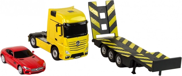Große Gummiräder sorgen für Stabilität und Traktion beim Transport anderer Fahrzeuge. Darüber hinaus verstärken leuchtende Lichter die Realistik und ergänzen eindrucksvoll die Präsentation auf der Straße.