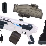 Der Akku der Pistole wird mit dem mitgelieferten Ladegerät aufgeladen, was eine einfache Bedienung und hohen Nutzerkomfort gewährleistet. Die Akkukapazität beträgt 7,4 V und sorgt für eine langanhaltende und zuverlässige Leistung während des Spiels.