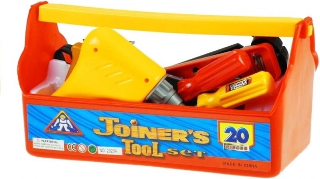 Bohrmaschine, Hammer, Säge, Schraubendreher und Schraubenschlüssel sehen aus wie echte Werkzeuge, haben jedoch sichere Formen und eine leichte Konstruktion. So können Kinder Feinmotorik und Koordination ohne Risiko trainieren.