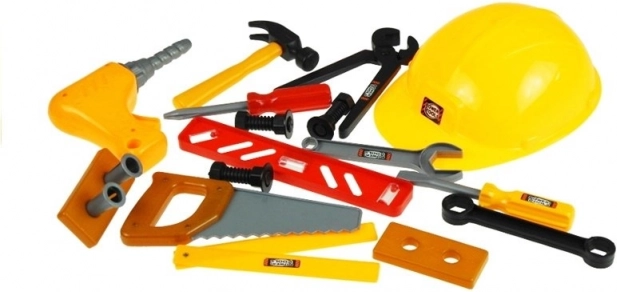Zum Set gehört ein leichter Kunststoffhelm als stilvolles Accessoire für kleine Baumeister. Er fördert das kreative Rollenspiel und sorgt beim Werken für ein authentisches Erlebnis.