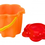 Der Eimer ist mit einem blütenförmigen Deckel ausgestattet, der als Sandsieb dient und dem Spiel im Sand eine weitere Dimension verleiht.