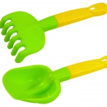 Das Set enthält eine Kinder-Schaufel und eine Harke mit abgerundeten Kanten, ideal für kleine Hände und sicher für Kinder.