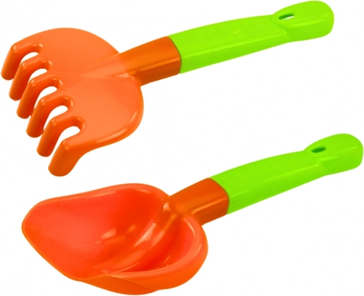 Leichte und robuste Schaufeln und Rechen, die für die einfache Nutzung durch kleine Kinder beim Spielen im Sand entworfen wurden.