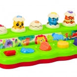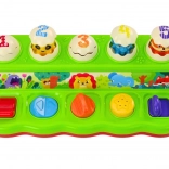 .Dieses farbenfrohe und interaktive Pop-up-Spiel ist ein großartiges Spielzeug, das jedes Kind erfreut. Das Spielzeug besteht aus fünf nummerierten Eiern, von denen jedes ein einzigartiges Design hat. Unter jedem Ei befindet sich ein Knopf, der beim Drücken, Schieben oder Drehen dafür sorgt, dass eines der fünf niedlichen Tiere aus dem Ei herausspringt: Nilpferd, Pandabär, Löwe, Elefant und Fuchs. Jeder Knopf hat eine andere Farbe, was beim Erlernen der Farberkennung hilft. Die Knöpfe müssen bewegt, gezogen oder gedreht werden.