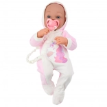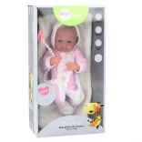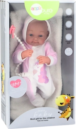 Die Puppe ist aus sicheren und robusten Materialien hergestellt, die Kindern ein sicheres Spiel bieten. Zudem ist ein Schnuller an einer Kette, die an der Kleidung der Puppe befestigt ist, und eine weiche Decke im Set enthalten.