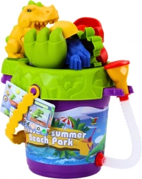 Das komplette Sandspielset mit Dinosauriermotiv beschäftigt Kinder stundenlang. Die integrierte Brause am Eimer und die Mühle mit Trichter verwandeln das Spiel mit Wasser und Sand in kleine Experimente – Kinder können bewässern, den Fluss beobachten und verfolgen, wie Wasser oder Sand durch die Mühle laufen. Der Eimerdeckel fungiert als Sieb zum Trennen von Sand und kleinen Steinen oder Muscheln.