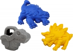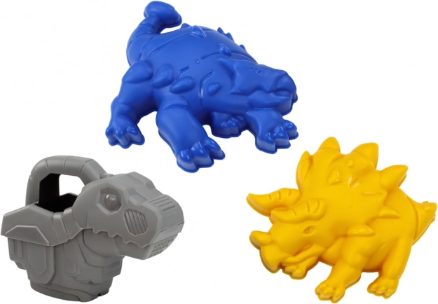 Die Dinosaurier-Gießkanne lädt zu Wasserspielen ein und die Förmchen (z. B. Triceratops) inspirieren zu thematischen Sandwelten.