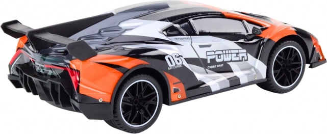 Grau‑orange Karosserie mit Rennakzenten, Schriftzügen und Heckflügel verleiht dem Modell einen realistischen Look.
