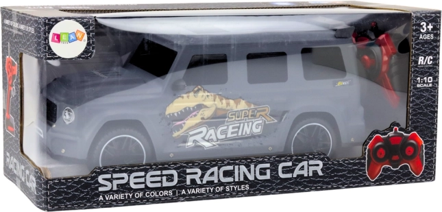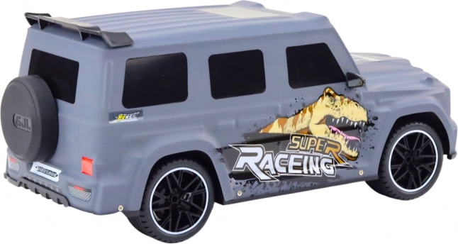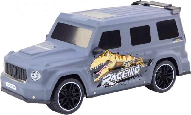 Stylisches RC-Auto in Grau mit origineller Dinosaurier-Grafik begeistert kleine und große Fans schneller Fahrten. Realistische vordere Scheinwerfer sorgen auch in der Dämmerung für Fahrspaß, und die hochwertige Verarbeitung gewährleistet eine lange Lebensdauer. Eine tolle Geschenkidee für Kinder ab 3 Jahren.