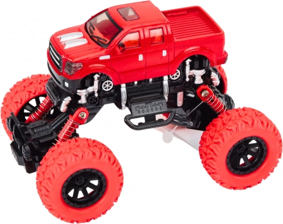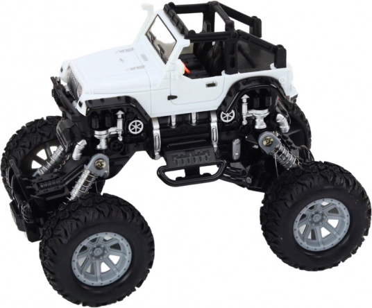 Der 4x4-Geländewagen ist für actionreiches Spiel unter anspruchsvollen Bedingungen konzipiert. Die hohe, gefederte Aufhängung und die großen, profilierten Räder ermöglichen das mühelose Überfahren von Hindernissen, Steinen und unebenem Untergrund. Realistische Details wie Stoßfänger und Seitenteile verleihen dem Spielzeug das Aussehen eines echten Offroad-Fahrzeugs.