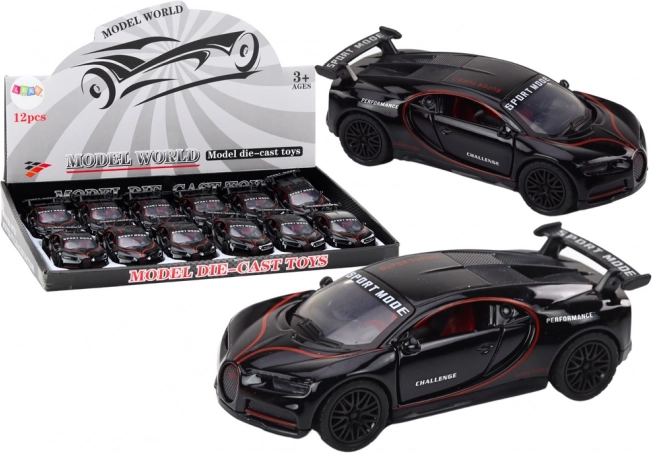 Dieses dynamische Sportwagenmodell im Maßstab 1:32 kombiniert modernes Design, robuste Metallausführung und unterhaltsame Funktionen. Die schwarze Karosserie mit grünem Streifen unterstreicht den Renncharakter, während Spoiler und öffnende Türen dem Auto ein realistisches Aussehen verleihen.