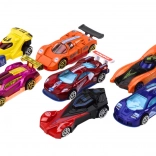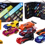 Im Inneren finden Sie verschiedene Modelle von Rennwagen in leuchtenden Farben und Stilen, hergestellt aus hochwertigen Materialien, die für Widerstandsfähigkeit und lange Lebensdauer sorgen. Das Set enthält außerdem Zubehör wie Ampeln und eine Tankstelle, die das Spiel um realistische Elemente bereichern und Kindern das Erlernen der Verkehrsregeln ermöglichen.