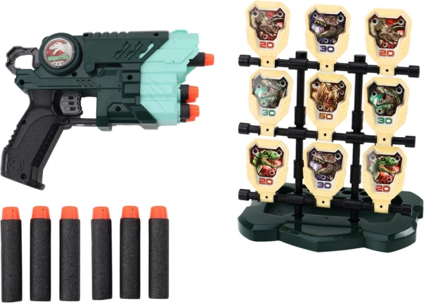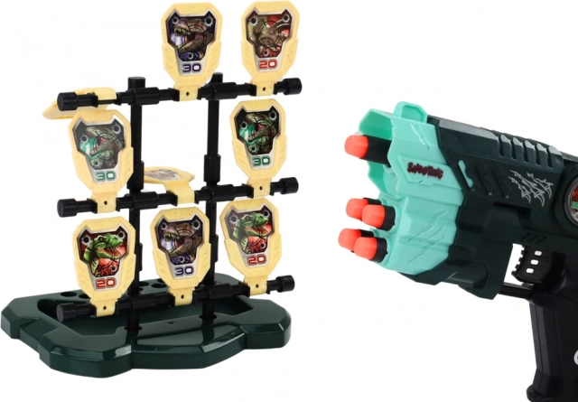 Das Schießset mit Dinosauriermotiv wurde für Kinder entwickelt und bietet ein einzigartiges Spielerlebnis, das Spaß und die Förderung von Fähigkeiten verbindet. Das Set enthält eine leichte, ergonomische Pistole, die auch für kleinere Hände leicht zu handhaben ist.