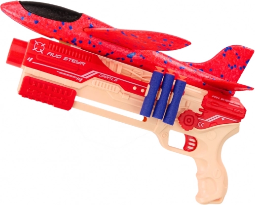 Die Pistole ermöglicht das Abfeuern von Schaumgeschossen mit einer Gummisaugnapfspitze, die sicher auf verschiedenen Oberflächen haften kann. Das ist ein großartiger Spaß, um Zielgenauigkeit und Präzision zu trainieren. An die Pistole kann ein spezielles Flugzeug angeschlossen, der Mechanismus gespannt und in die Luft geschossen werden. Dank dieser Funktion können Kinder den Flug des Flugzeugs genießen, was die Fantasie anregt und das Spielen im Freien fördert.