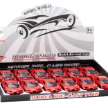 Die rote Karosserie dieses kleinen Sportwagens zieht durch ihr elegantes und modernes Aussehen die Aufmerksamkeit auf sich. Die Farbe verleiht nicht nur Eleganz, sondern hebt auch den sportlichen Charakter hervor, was dieses Modell zu einem echten Juwel jeder Sammlung macht.