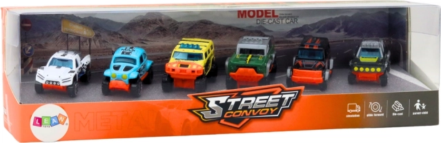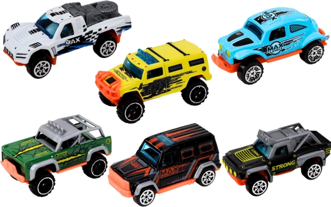 Das Set metallischer Geländewagen bietet eine einzigartige Kombination aus Stilen und Farben, sodass jedes Spiel ein neues Abenteuer bringt. Jedes Auto ist sorgfältig aus Metall gefertigt, was ihre Robustheit und Langlebigkeit gewährleistet. Dieses Set ist das perfekte Geschenk für Kinder, die Abenteuer und neue Herausforderungen lieben.