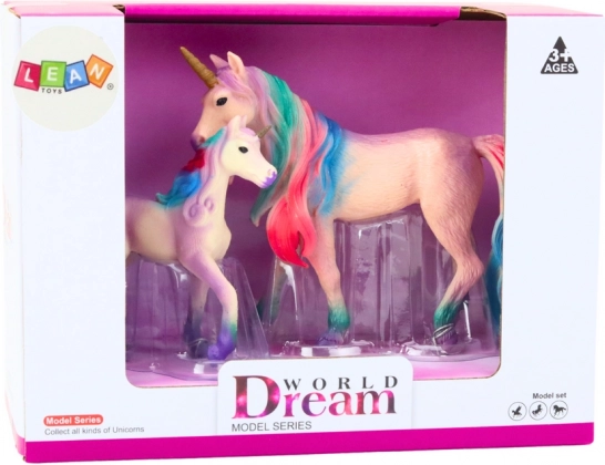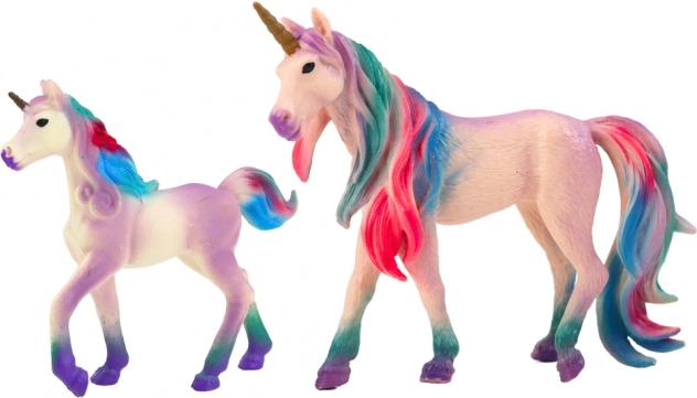 • 2 Figuren im Set: erwachsenes Einhorn und Fohlen