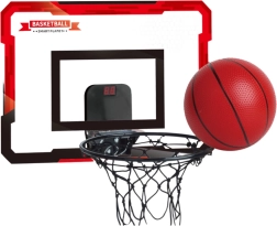 Komplettes Basketball-Set für Kinder und Anfänger für Innen- und Außenbereiche. Transparente, robuste Tafel mit modernem Muster, stabiler Korb mit Netz, Punktzähler, Ball mit Pumpe und sämtliches Montagematerial. Ideal für aktive Unterhaltung, Kompetenzentwicklung und Familienduelle.