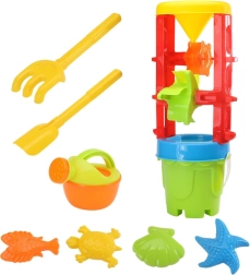 Im Set ist alles enthalten, was kleine Baumeister benötigen: Eimer, Schaufel, Rechen, Gießkanne und 4 Förmchen. Dank der stabilen, hochwertigen Kunststoffkonstruktion und leuchtenden Farben ist das Set langlebig, sicher und für Kinder besonders attraktiv.