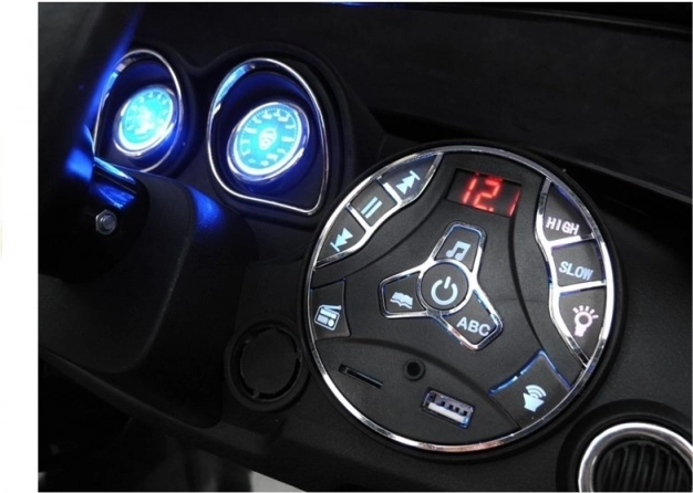 Im Inneren des Autos finden Sie einen weichen gepolsterten Sitz, der Komfort und Sicherheit garantiert, während die mitgelieferte 2.4G-Fernbedienung elterliche Kontrolle über das Auto ermöglicht. Die Karosserie in markantem Schwarzton ist mit roten Akzenten und beeindruckenden LED-Leuchten versehen, die die Sichtbarkeit und Sicherheit auf den Straßen erhöhen.