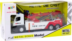 Metall-Abschleppwagen mit Kran, zwei Haken, Licht und Sound, weiß‑rot