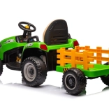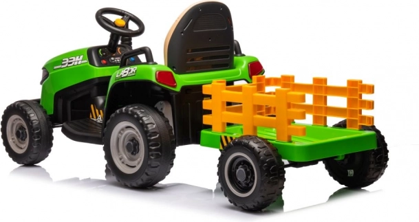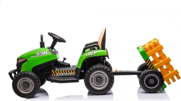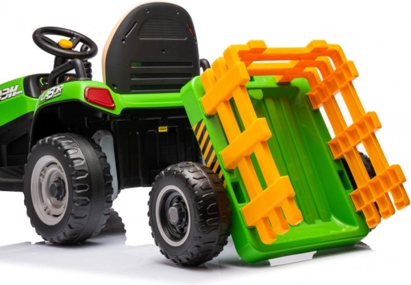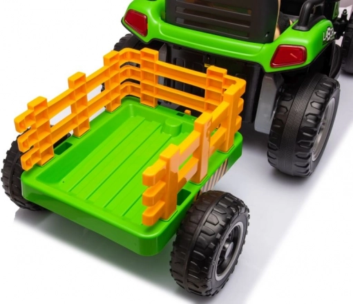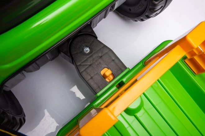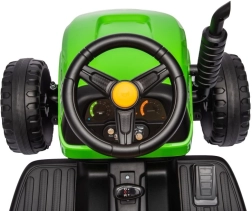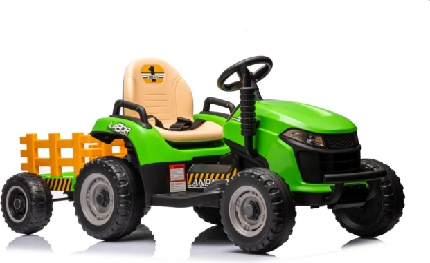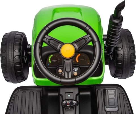 Dieser grüne Kindertraktor mit Batterie sorgt für stundenlangen Spaß an der frischen Luft. Große, profilierte Räder meistern verschiedene Untergründe, und der abnehmbare Anhänger ermöglicht kleinen Fahrern, Spielsachen oder Kleinigkeiten zu transportieren. Realistische Details wie Lenkrad, Armaturenbrett und Bedienelemente vermitteln ein echtes Fahrgefühl.