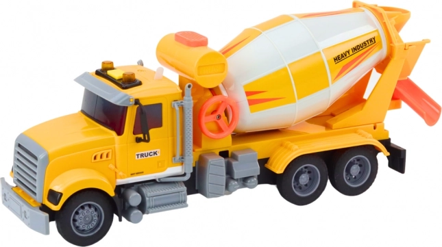 Gelber Betonmischer-LKW mit Reibungsantrieb, Licht- und Soundeffekten