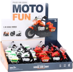 Das verkleinerte Modell eines Polizeimotorrads im Maßstab 1:10 bietet realistische Licht- und Soundeffekte, die die Vorstellungskraft und Kreativität beim Spielen fördern. Das Spielzeug ist in zwei Farben erhältlich: weiß und rot. Beim Kauf können Sie die Farbe auswählen, andernfalls wird sie zufällig ausgewählt.
