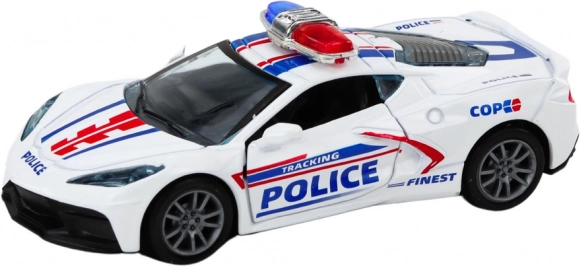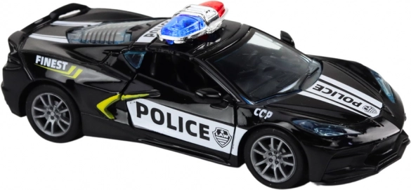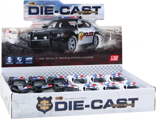 Es kommt in einer zweiteiligen Farbvariation - Weiß und Schwarz, und die Farbe wird zufällig für einen Überraschungsmoment beim Kauf geliefert. Das Auto ist mit authentischen Polizeimustern verziert, einschließlich Aufklebern und charakteristischen Polizeidisplays auf dem Dach, die rot oder blau sein können.