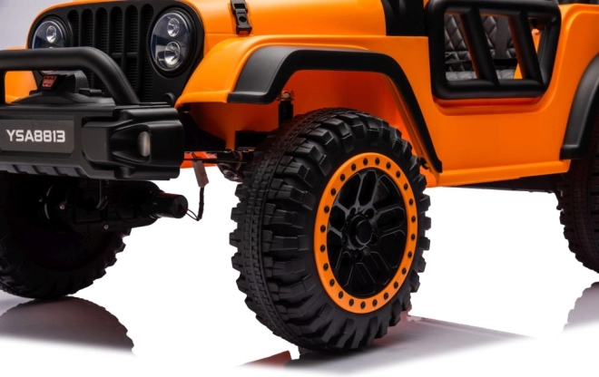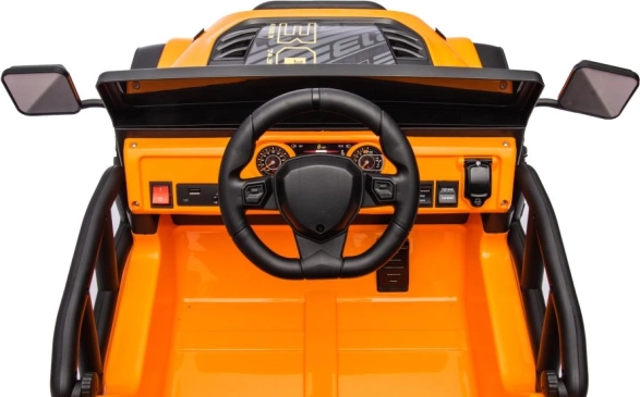Genießen Sie eine tolle Fahrt mit diesem orangefarbenen akkubetriebenen Kinderauto. Dank des detaillierten Designs und der sicheren Funktionen ist es die perfekte Wahl für sicheres und lustiges Spielen im Freien.