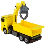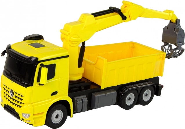 Das lizenzierte MERCEDES-BENZ Arocs Modell mit funktionsfähigem Ausleger und Greifer imitiert originalgetreu ein echtes Baufahrzeug. Der drehbare Greifer lässt sich heben und senken; für noch mehr Spielvarianten kann er auch abgenommen werden. LED-Lichter verstärken das realistische Fahrerlebnis, die robuste Kunststoffkonstruktion und Gummireifen sorgen für Stabilität auf verschiedenen Untergründen.