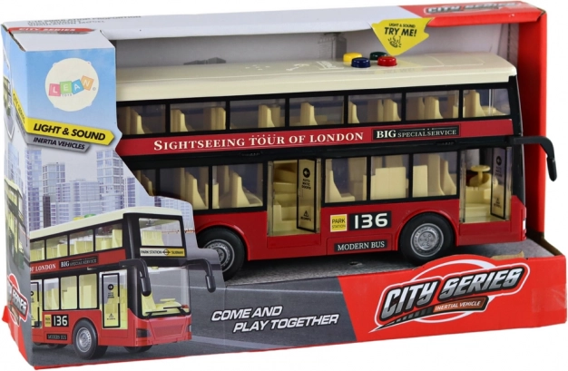 Der geschmackvolle rote zweistöckige Bus ist ideal für Kinder, die städtische Fahrzeuge lieben. Er verfügt über einen Reibungsantrieb, der die Bewegung erleichtert. Das Kind muss den Bus einfach nur schieben, um ihn zu bewegen.