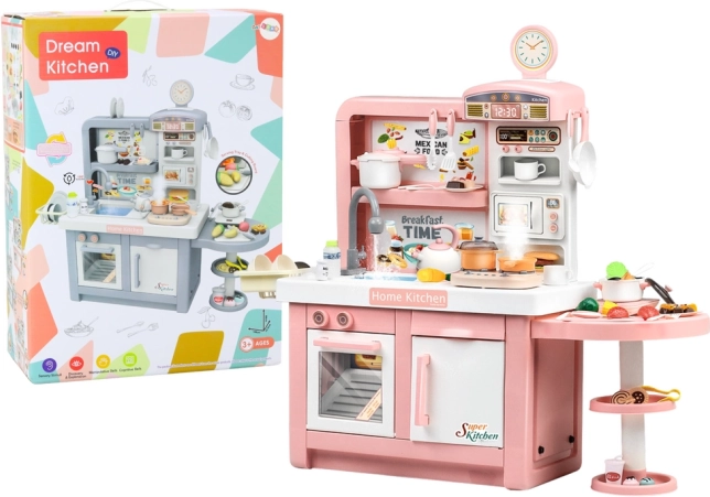 Diese Kinderküche ist die ideale Wahl für kleine Köchinnen und Köche. Sie bietet realistische Effekte – Lichter, Kochgeräusche und sanften, sicheren Dampf – wodurch das Spiel fesselnd und authentisch wird. Die stilvolle rosa Farbe erfreut Kinder und passt in jedes Kinderzimmer.