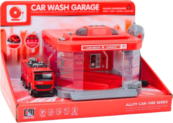 Die große rote Waschanlage und Feuerwehrgarage entführt Kinder in die Welt der Rettungseinsätze. Sie bietet eine drehbare Waschplattform, Licht- und Soundeffekte, einen realistischen Wasser-Sprühnebel und ein Funkgerät für noch mehr interaktiven Spielspaß und Förderung der Fantasie.