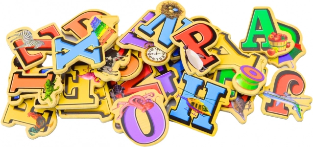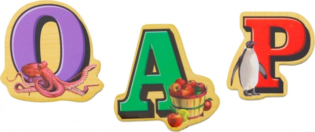 Mit diesem Set können Kinder das Alphabet interaktiv lernen und Buchstaben erkennen. Jeder Magnet ist sorgfältig gestaltet, um die Aufmerksamkeit zu erregen und das Lernen durch Spiel zu fördern. Zum Beispiel ist der Buchstabe 'A' mit einem Bild eines Apfels und der Buchstabe 'P' mit einem Pinguin dargestellt.