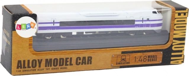 Dieses präzise gefertigte Zugmodell aus Metall im Maßstab 1:48 besticht durch seine Robustheit und realistische Optik. Das elegante weiß‑violette Finish und sorgfältig ausgearbeitete Details wie Fenster und Türen machen es zu einem attraktiven Stück für Sammler und kleine Eisenbahn‑Fans.