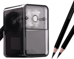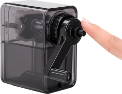 Praktischer Kurbel-Anspitzer in elegantem Schwarz für Standard-Bleistifte und -Buntstifte. Schnelles und müheloses Anspitzen per Kurbel, sauberer Arbeitsplatz dank integriertem Auffangbehälter für Späne und robuste Konstruktion für lange Lebensdauer. Geeignet für Kinder ab 3 Jahren, mit CE-Zertifizierung und Norm EN71.