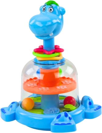 Der interaktive kleine Nilpferd-Kreisel erfreut mit leuchtenden Farben und einfacher Bedienung. Durch Drücken des Köpfchens dreht sich im Bäuchlein ein Rädchen und 4 farbige Kugeln geraten in Bewegung. Kinder beobachten, wie die Kugeln springen und die Richtung wechseln – das fördert Neugier und Konzentration.