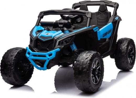 Der Buggy Can-Am ist mit Elementen ausgestattet, die einem echten Offroad-Fahrzeug ähneln, mit großen Rädern und robuster Konstruktion.