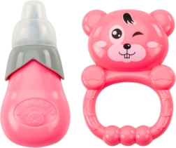 Gib der Puppe das beiliegende Fläschchen und beobachte, wie sie nach kurzer Zeit Pipi macht – eine tolle Möglichkeit, Kindern die Babypflege näherzubringen.
