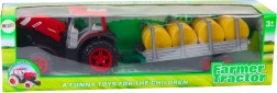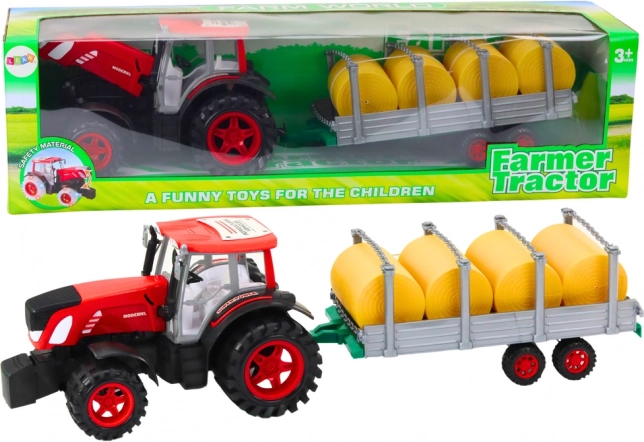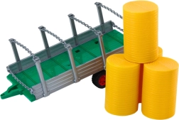 Zum Traktor gehört ein Anhänger mit gelben zylindrischen Heuballen. Er ermöglicht Kindern, den Transport von Ladung zu simulieren und erhöht so den Realismus des Spiels.